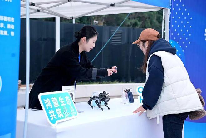 鸿蒙生态(成都)创新中心展示了OpenHarmony智能机器狗,可广泛应用于中小学、科创教学场景。此外,智能手表、智能耳勺等鸿蒙生态产品直观展示了鸿蒙技术成果,提升了C端认知度,吸引市民驻足拍照。