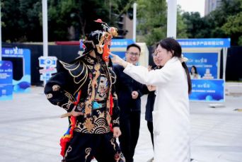 主舞台区,红毯与科技感背景烘托出高端氛围,吸引大量市民驻足。现场变脸、长嘴壶茶艺等非遗节目表演将活动推向高潮。