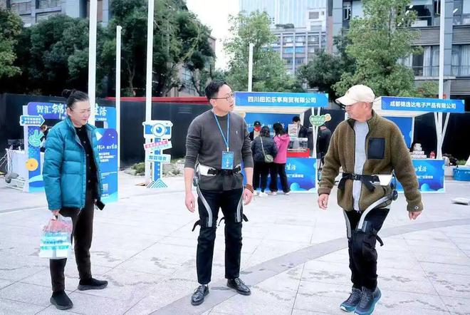 卿心懂卿科技有限责任公司带来“AI+外骨骼”智能穿戴设备,可让人在平地行走与登台阶时清晰感知科技赋能——抬腿瞬间,设备协同大腿发力,有效减轻关节负担。现场群众跃跃欲试,亲身感受科技带来的生活便利。